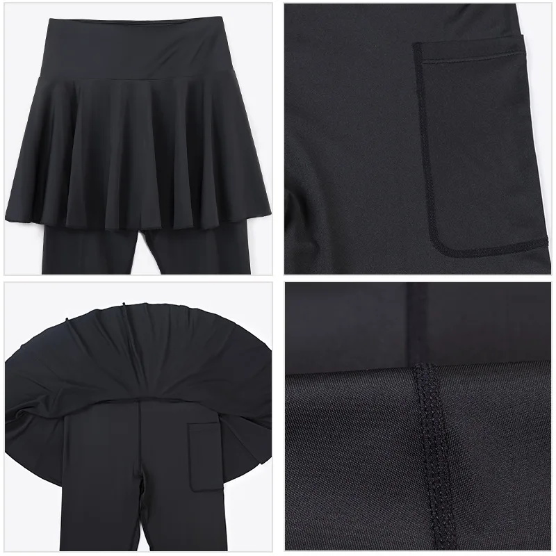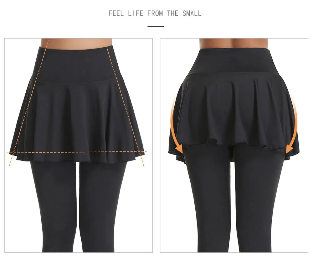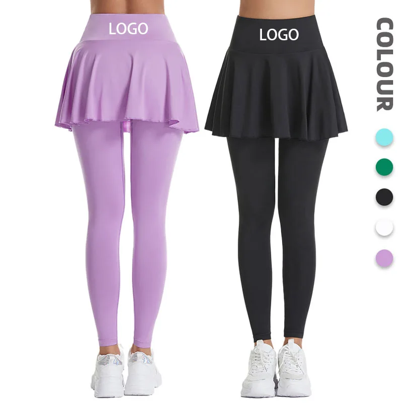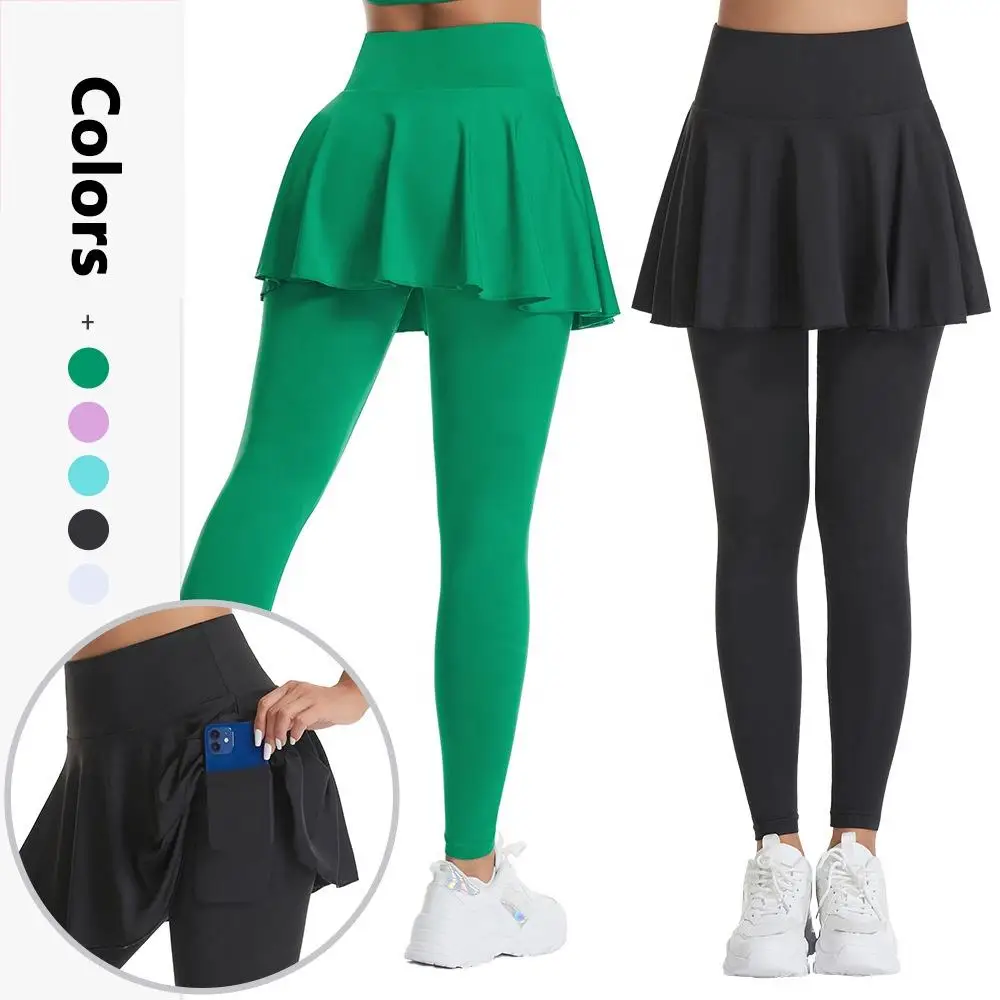 Women's Double Layer Running Tights Wholesale Two-Piece Sports Gym Wear with Elastic Waist Tennis Skirt Pants Solid Pattern